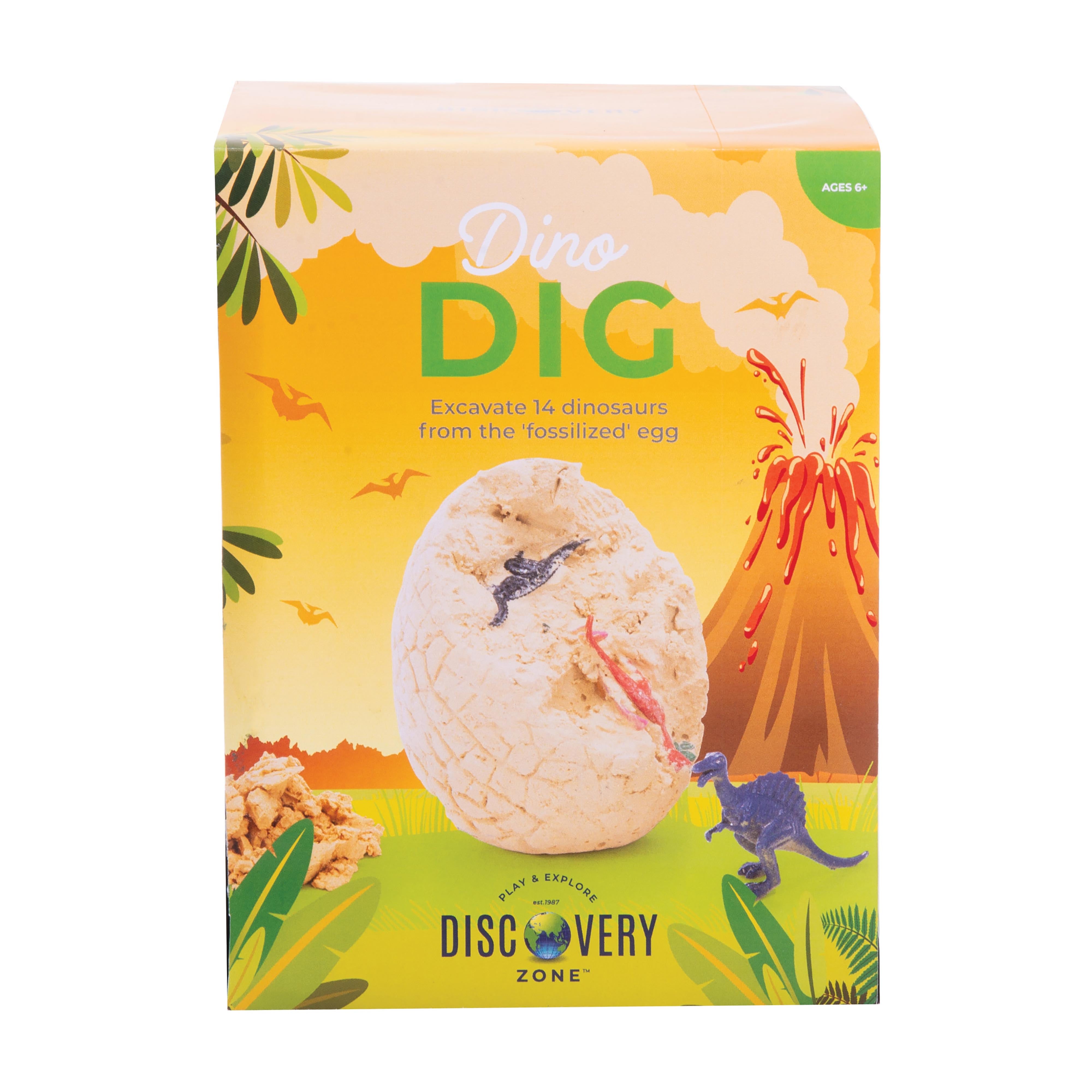 - Includes: 900g clay egg, 14 dinosaurs and 3 wooden excavation tools.